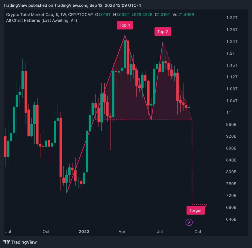 “No dibujamos manualmente el doble techo en este gráfico. Fue detectado automáticamente. También automáticamente se dibujó, mostró y coloreó”. Lo anterior lo expresó la plataforma en un post de Twitter haciendo referencia al siguiente gráfico: