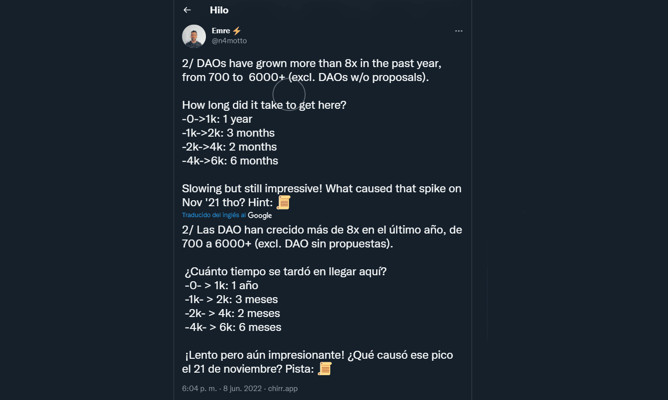 De acuerdo con los datos provistos por Snapshot Labs y compartidos en Twitter por Emre Caliskan, ingeniero de la firma Electric Capital (dedicada a la captación de capitales para emprendimientos vinculados a las criptomonedas), las DAO se multiplicaron en 8,8 veces en 12 meses.