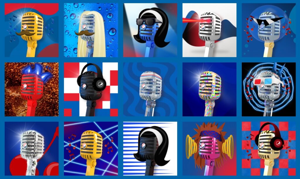 Pepsi creó 1.893 tokens no fungibles en homenaje al año en que se fundó la empresa y a la historia que esta marca ha tenido en la industria de la música. Cada uno muestra el dibujo de un micrófono y tiene el objetivo de inspirar un rasgo característico de cada una de sus bebidas. Incluyen a la clásica, la diet, la wild cherry, la zero azúcar y la crystal.