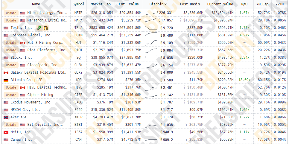 Según el sitio BitcoinTreasuries, la compañía dedicada al desarrollo de tecnología empresarial posee un total de 226.331 BTC, lo que equivale a 8.330 millones de dólares. A su vez, tiene una capitalización de mercado de casi 26.300 millones de dólares.