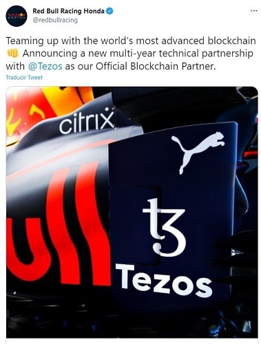 El equipo Red Bull Racing Honda, que participa del campeonato mundial de Fórmula 1 organizado por la Federación Internacional del Automóvil (FIA) anunció que lanzará sus propios tokens no fungibles (NFT, por sus siglas en inglés) y fan tokens. Para ello, se valdrá de la infraestructura de la blockchain de Tezos.