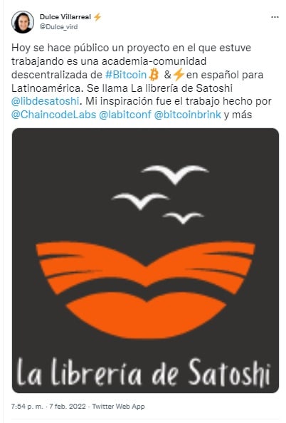 La Librería de Satoshi planificó un espacio en Twitter a modo de inauguración oficial de sus actividades, el cual se llevará a cabo este miércoles 9 de febrero. Actualmente, sigue abierto el registro de participantes para los interesaros, en el sitio web del proyecto.