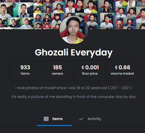 Ghozali, quien es un estudiante universitario de informática de Indonesia, se tomó una selfie cada día desde los 18 hasta sus actuales 22 años. El objetivo de este proyecto personal era hacer un video que recopilara todas las fotos para recordar su crecimiento. Aunque la idea cambió un poco cuando decidió venderlas como NFT en la plataforma OpenSea.