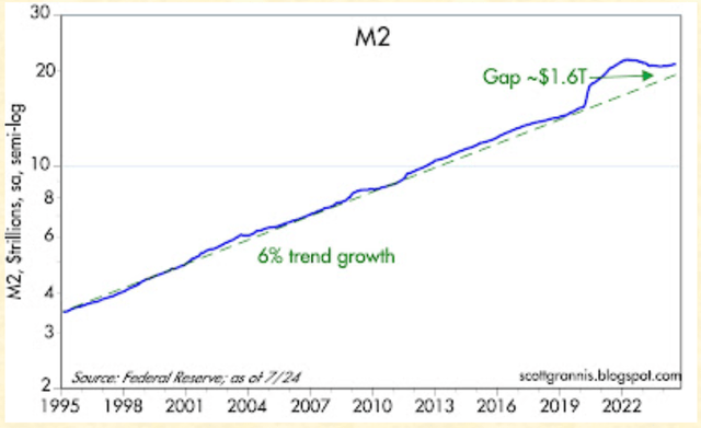 Para Grannis, la demanda de dinero se está acercando a niveles sostenibles, al igual que el exceso de la M2 se está reduciendo. “Esa es una receta para una inflación baja y estable”, concluye, lo que favorece la reducción de tasas de interés que impulsa las inversiones.