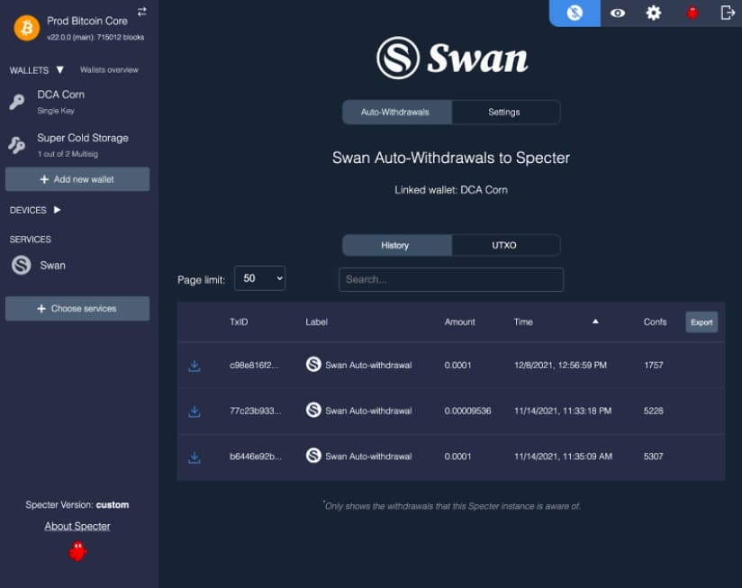 Los usuarios de Specter Desktop no solo podrán poner en marcha planes de ahorros en BTC administrados por Swan Bitcoin; sino que, además, podrán automatizar el retiro de sus ahorros en bitcoin para que lleguen directamente a cualquiera de sus monederos vinculados con la aplicación de Specter.