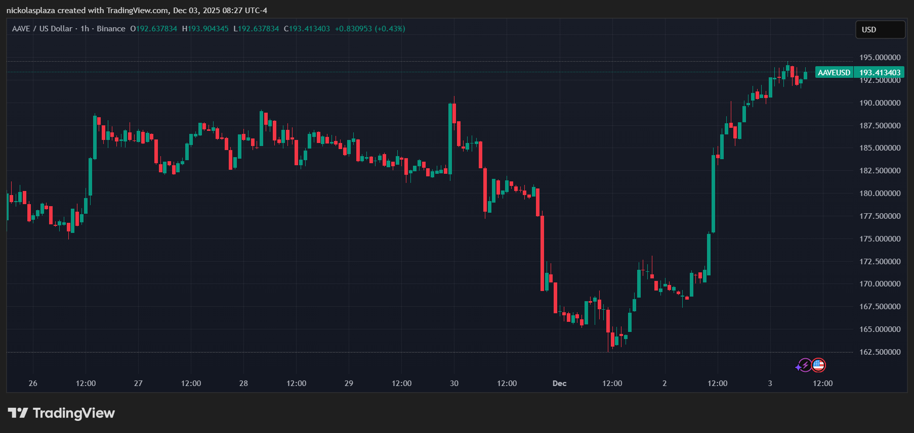 La criptomoneda AAVE tuvo un incremento de 17% en las últimas 24 horas.