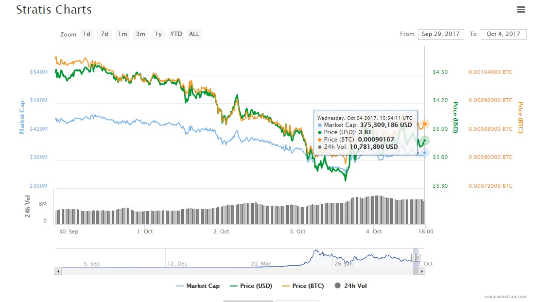 Por su parte Stratis, que llegó a 368.880.262 dólares de capitalización de mercado, experimenta un alza considerable tras las declaraciones del CEO del proyecto, Chris Trew, difundidas por la cuenta oficial del proyecto en Twitter. En este caso también hay noticias sobre las carteras de Stratis, ya que la versión Beta de la cartera fría que se emplea en su blockchain Strat, será probada por un exclusivo grupo de su comunidad y, de no hallarse mayores errores, se enviará a fase de producción.