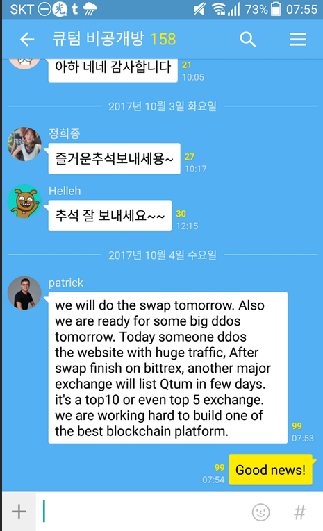Por otro lado, se han incrementado los rumores sobre la inclusión de la moneda de Qtum en la casa de cambio Bithumb, -la de mayor importancia en Corea- y a través de Reddit incluso circulan datos sobre algunos hechos que hacen que se confirme, especialmente tras lo dicho por el CEO del proyecto, Patrick Dai sobre la posible alianza con una importante casa de cambio.