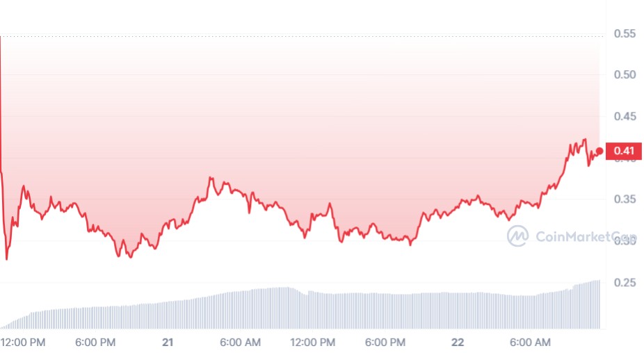 El precio del activo comenzó a cotizar en USD 0,54 y a las pocas horas descendió a USD 0,30. Sin embargo, en las últimas 24 se ha logrado recuperar parcialmente y cotiza a USD 0,41 por unidad.