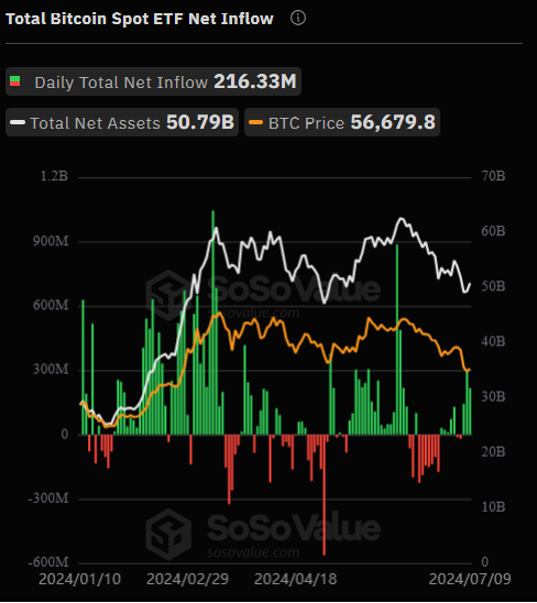 Asimismo, los ETF de bitcoin en Estados Unidos han visto un regreso de dinero, tras algunos días con números en rojo.