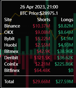 En total, se liquidaron USD 57,25 millones en bitcoin el 26 de abril.