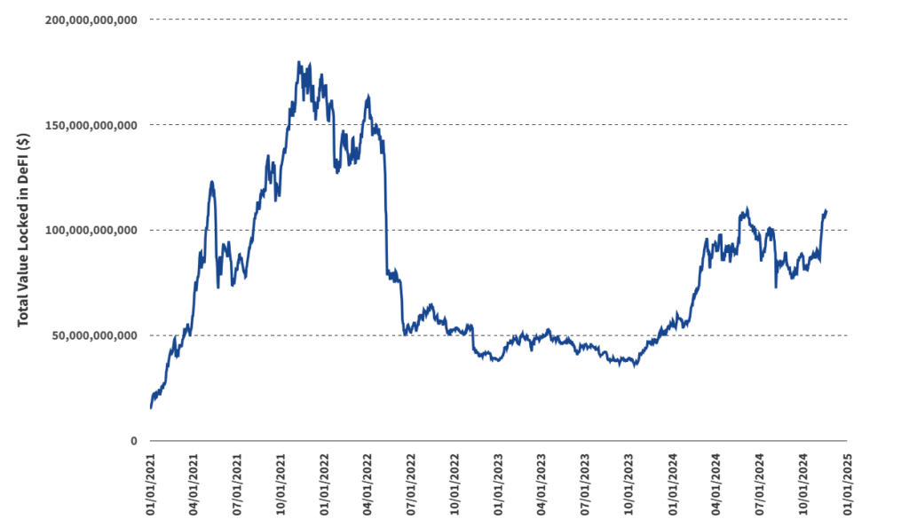 La industria de las finanzas descentralizadas tuvo su apogeo en el ciclo alcista de 2020 y 2021. Pero, según el análisis de Sigel y Bush, podría volver con fuerza en 2025.