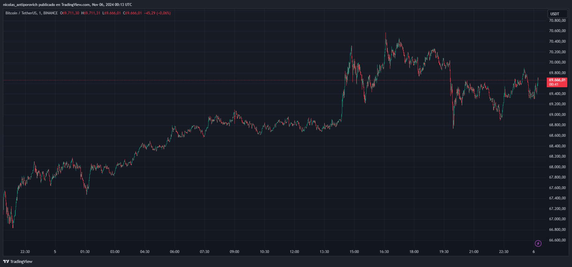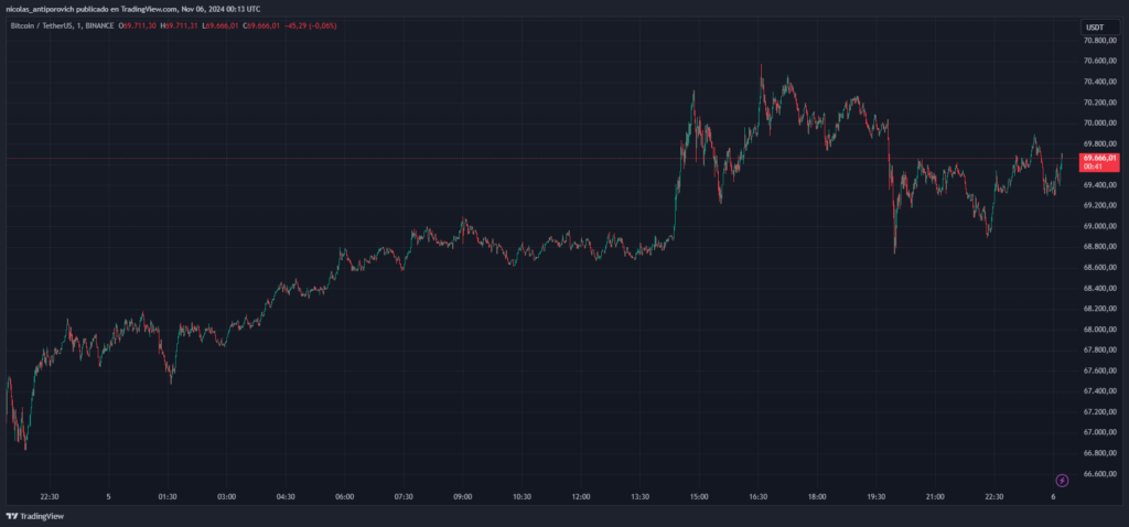 El precio de bitcoin (BTC) se está acercando una vez más a los 70.000 dólares, cifra que ha logrado sobrepasar en varias ocasiones en el transcurso del día.