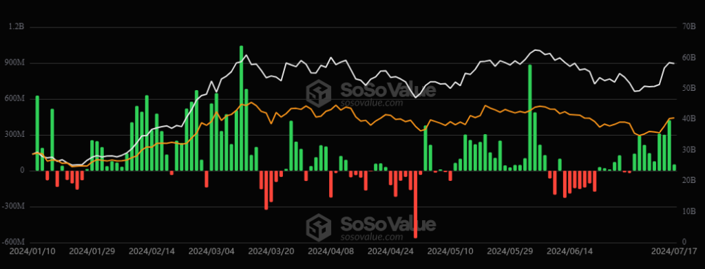 Desde su lanzamiento en enero de 2024, los fondos cotizados en bolsa (ETF) al contado basados en este activo acumularon más de 16.000 millones de dólares en entradas netas, de acuerdo con los datos de SosoValue.