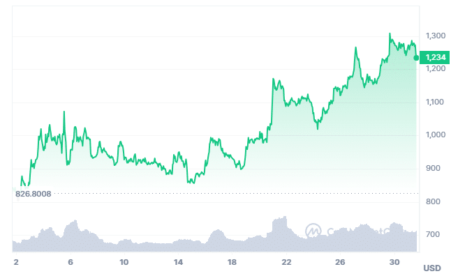 En el último mes, su precio se incrementó más de 90%, tal como puede verse en el siguiente gráfico: