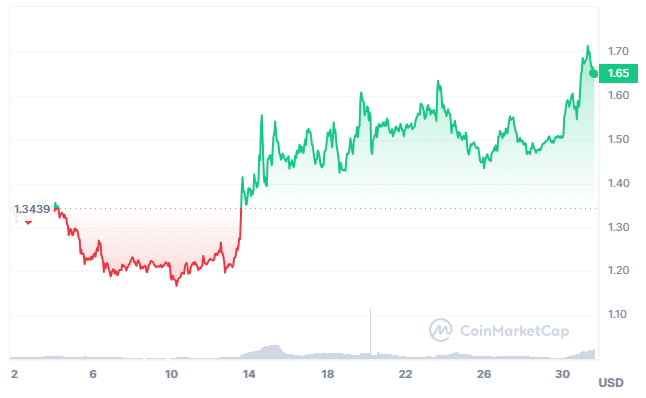 En este contexto, el precio del token se incrementó 47% en el último mes.
