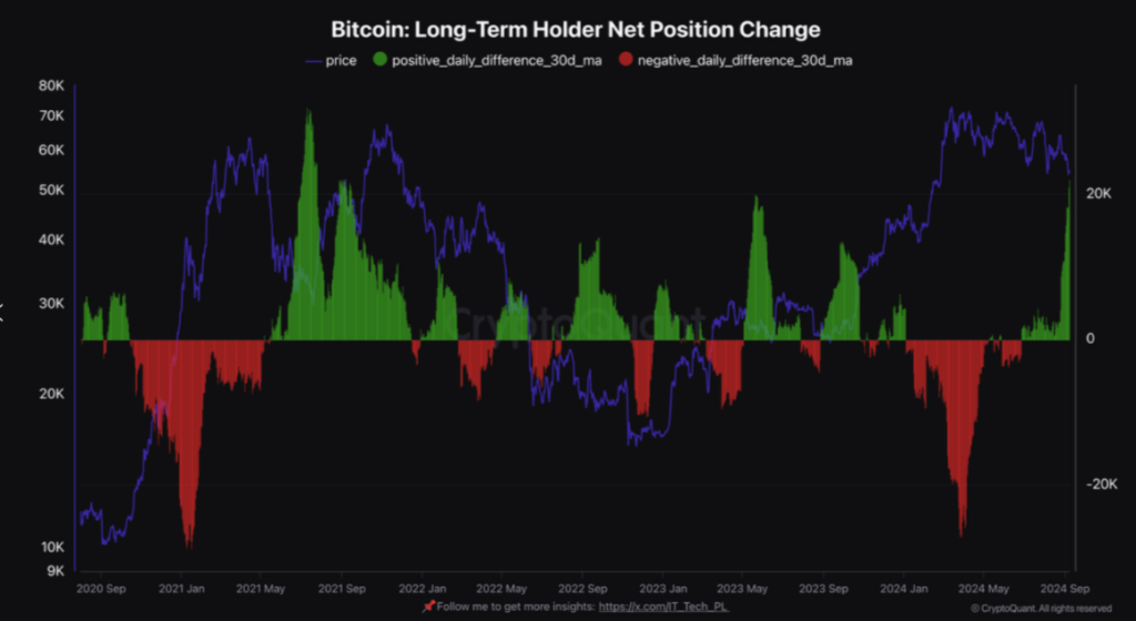 El aumento en las posiciones de los tenedores de bitcoin a largo plazo sugiere que el mercado podría estabilizarse a medida que continúan acumulando. El flujo constante de bitcoin de las “manos de papel” a las “manos de diamante” apunta a un fortalecimiento del mercado a largo plazo.