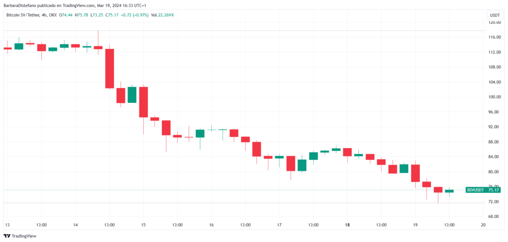 Bitcoin SV (BSV) se acerca a los 70 dólares, con una caída superior al 30% en lo que va del mes.