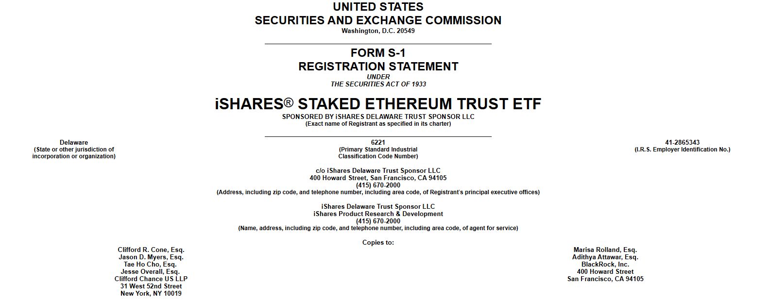 BlackRock, el gestor de activos más grande del mundo, presentó una solicitud para lanzar un fondo cotizado en bolsa (ETF) de ether (ETH), la criptomoneda de Ethereum, con staking.