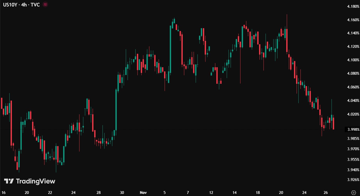 El rendimiento de los bonos del Tesoro de Estados Unidos a 10 años descendió por debajo del 4%.