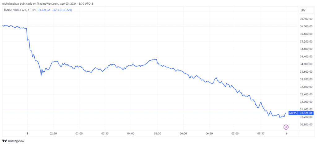 Entre los motivos más importantes que golpearon a los mercados, está el desempeño del índice Nikkei 225, que recopila las principales acciones japonesas de Tokio y cayó hoy más de un 12%.