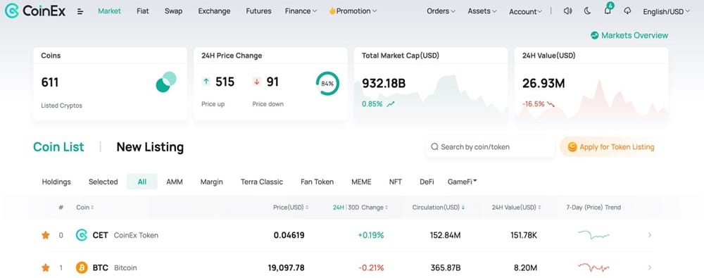 De acuerdo con su anuncio oficial, CoinEx ha lanzado la función ‘Vistazo general del mercado’ en su web (todavía no disponible en la aplicación móvil). Esta función permitirá mejorar la eficiencia y experiencia de trading, y ayudar a los usuarios a mantenerse al día con las tendencias del mercado. Entró en vigor desde el 23 de septiembre de 2022.