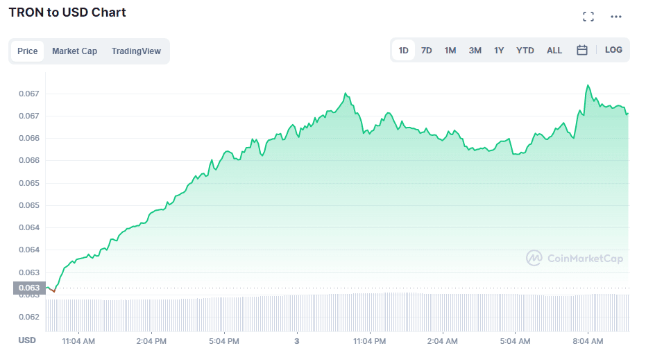 Al corte de este boletín, Tron ha subido un 6,24% en 24 horas. Su precio es de USD 0,06656 para una capitalización total de mercado de más de 6.100 millones de dólares. Tron es la criptomoneda número 13 con más capital en un mercado con más de 20.000 activos.