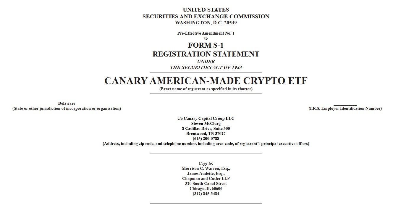 La firma de inversiones Canary Capital ha presentado ante la Comisión de Bolsa y Valores de Estados Unidos (SEC) una enmienda a una propuesta para un fondo cotizado en bolsa (ETF) que busca replicar el rendimiento de criptomonedas hechas en Estados Unidos.
