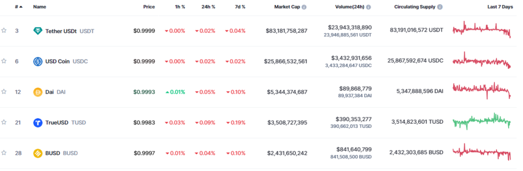 Incluso la mayoría de las stablecoins están con su gráfico de precios en rojo:
