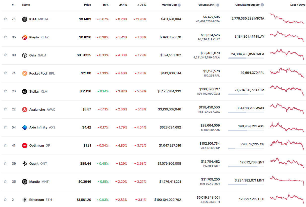 IOTA, KLAY y GALA lideran la caída en temporalidad semanal.