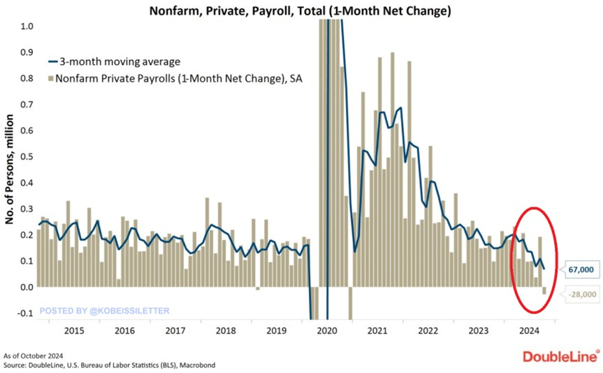 “Nunca antes se había observado una caída tan pronunciada en el empleo privado a tiempo completo fuera de períodos de recesión”, indica el informe de Kobeissi.