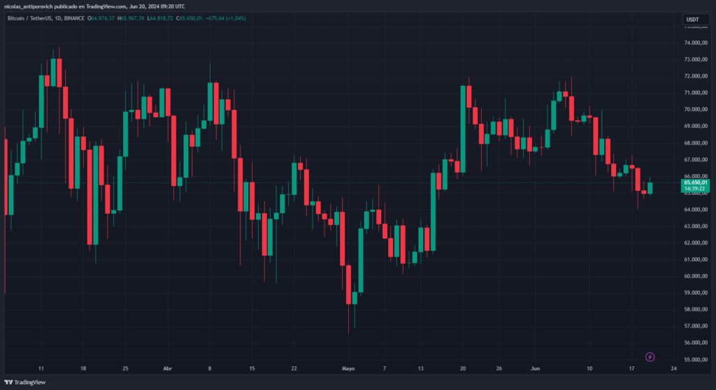 Al momento de esta publicación, como puede verse en la Calculadora de CriptoNoticias, cada BTC se comercia por alrededor de 65.700 dólares en los principales exchanges.