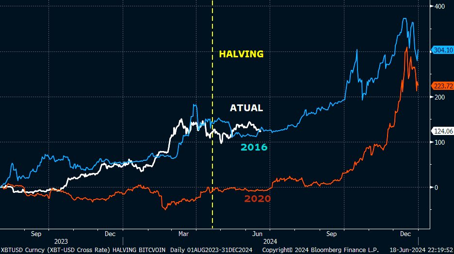 El hecho de pensar que quedarían 2 o 3 meses más de aburrido mercado lateral es coincidente con la tendencia del mercado, que muestra que el verano en el hemisferio norte suele ser un período sin mucha actividad para muchos activos financieros. Existe un popular refrán en este mundillo que reza “vende en mayo y vete”. Si esta “regla” se cumple en 2024, entonces recién en septiembre empezarían a verse signos de cambio de tendencia para bitcoin.