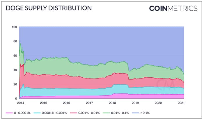 Los analistas creen que la concentración del capital en DOGE es realmente alta, si se toma en cuenta que al menos 2,7 millones de direcciones poseen al menos 1 moneda.