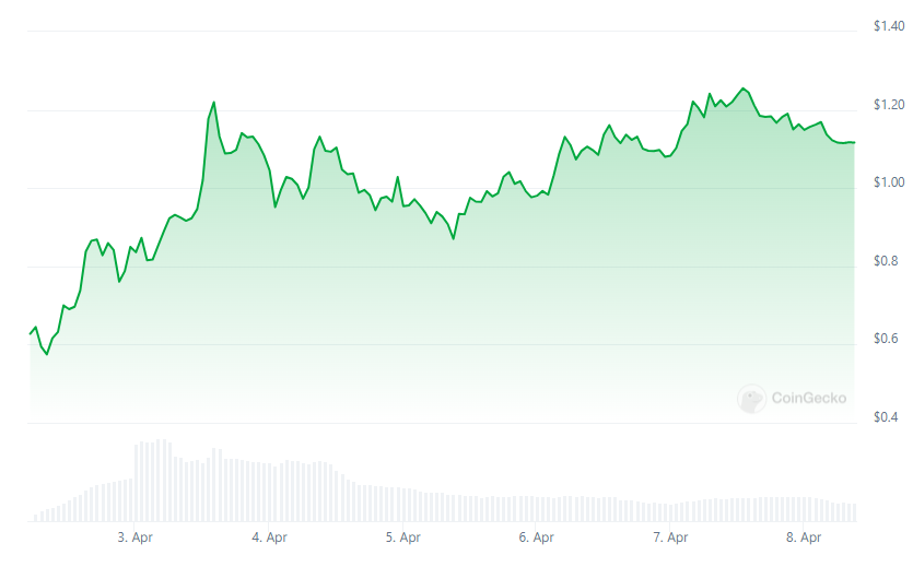 Impulsado por la buena acogida de USDe en el mercado, el token de gobernanza Ethena (ENA) tuvo una subida superior al 60% en los últimos 7 días. Al momento de esta publicación, ENA lidera el listado de criptomonedas y tokens con mayor subida porcentual semanal (dentro de las 100 con mayor capitalización de mercado).