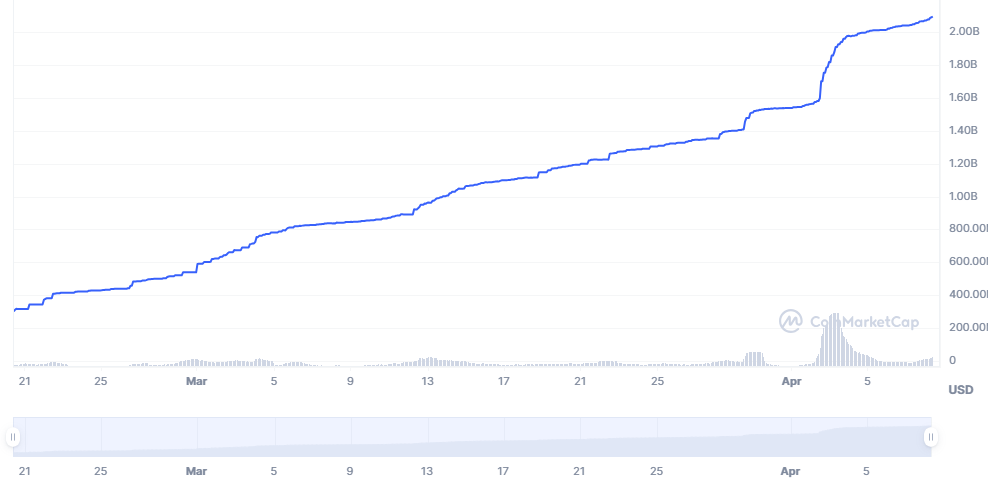 La semana pasada fue positiva para la stablecoin USDe, emitida por la organización Ethena. La capitalización de mercado de este activo digital superó los 2.000 millones de dólares.