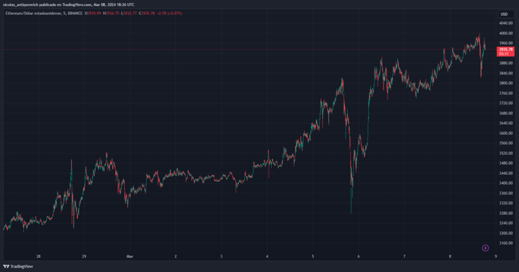 Ether (ETH), criptomoneda de la red Ethereum, ha llegado a los 4.000 dólares en varios exchanges durante la jornada actual, una marca de precio que no se veía desde enero de 2022.