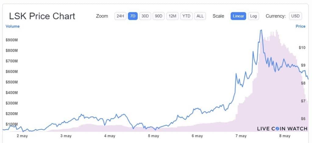 En promedio, LSK se apreció casi 54% en siete días. Al cierre de esta redacción, la capitalización de mercado de LSK es de USD 984 millones y el volumen de comercio diario es de USD 291 millones.