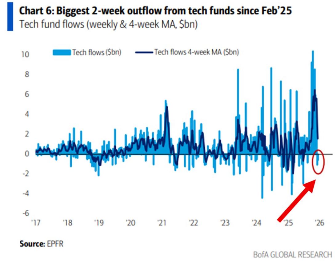 USD 2.000 millones salieron de fondos tecnológicos en las últimas 2 semanas.