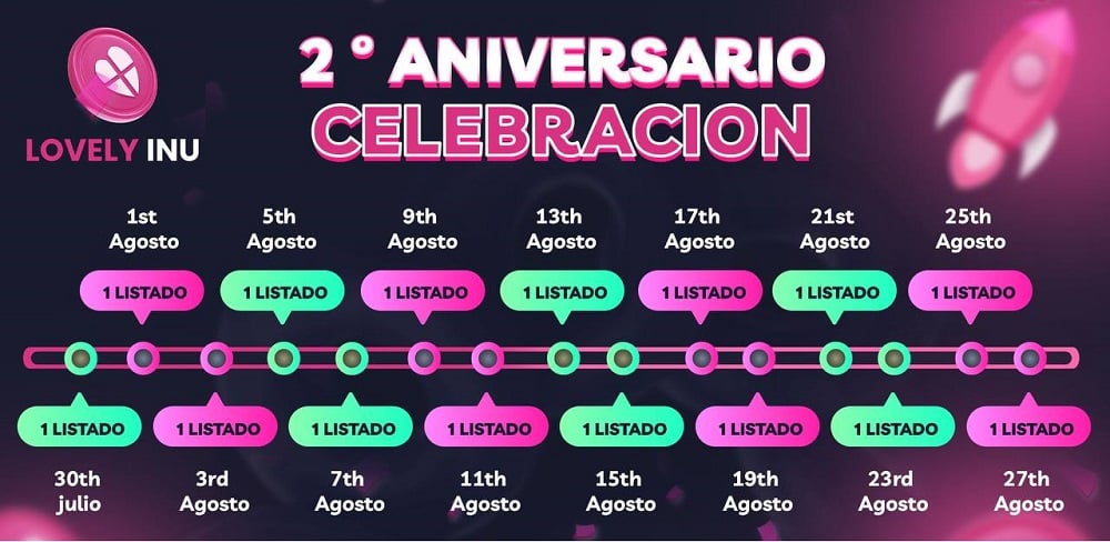 El 30 de julio de 2023, Lovely Inu tendrá su segundo aniversario llevándolo al siguiente nivel de emoción. Durante los días siguientes continuara brindando tiempo para que los usuarios se involucren y participen de la emoción.