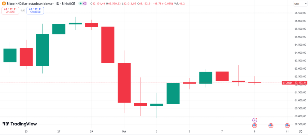 Bitcoin resiste por arriba de los 62.000 dólares.