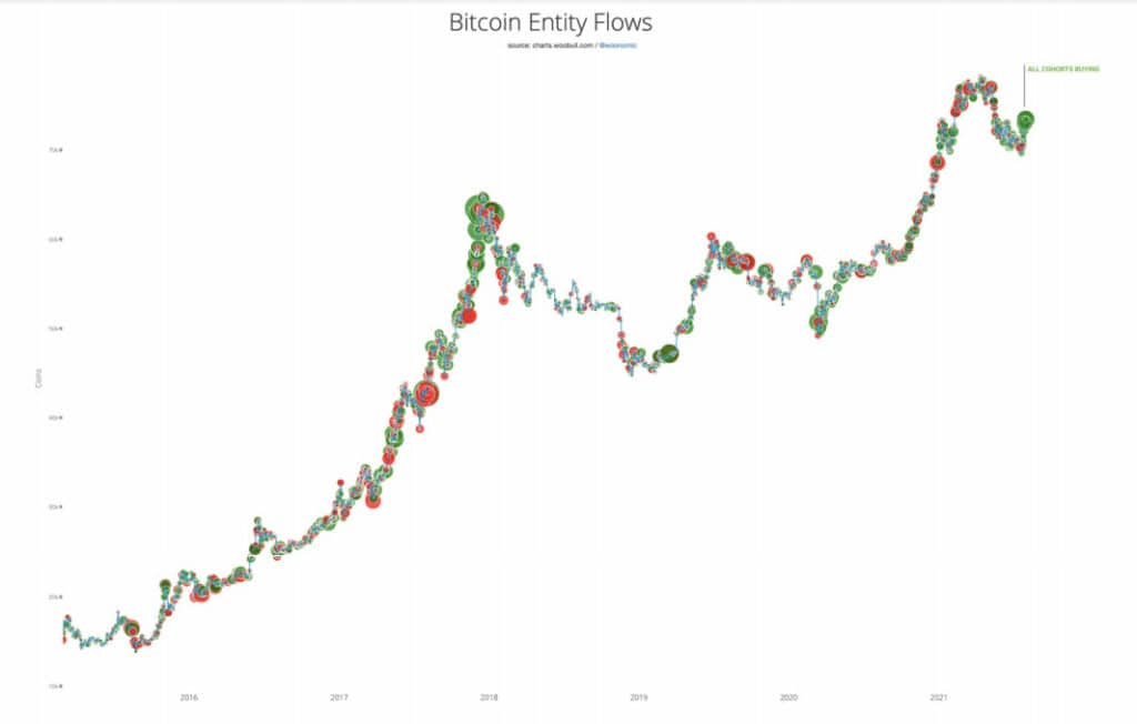 Para Willy Woo, nos encontramos en una situación muy especial, en la que todas las cohortes han comprado de manera continua por 9 días. «No he visto este tipo de eventos en los 10 años de la estructura de mercado de bitcoin», destaca Woo.