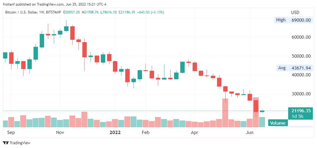 En el contexto de esta acentuada fase bajista, los participantes del mercado debaten sobre si ya el precio de bitcoin habría tocado el fondo, o si, por el contrario, hay posibilidades de que este comience a fluctuar en una banda de precio más baja. Al momento de la redacción de este artículo, la cotización de bitcoin es de USD 21.430 según puede verse en la Calculadora de CriptoNoticias.