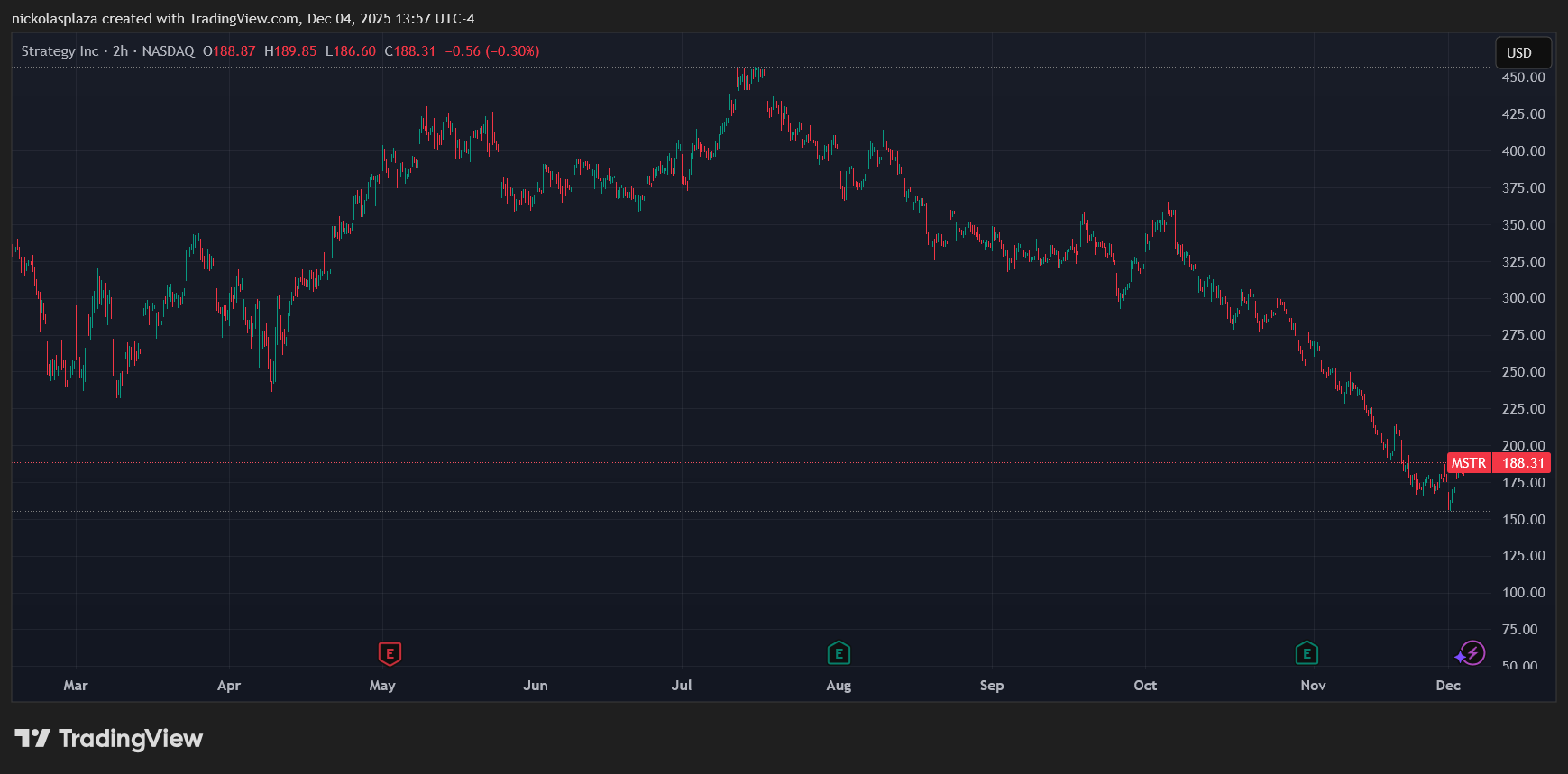 La volatilidad en las acciones de Strategy está ligada a un descenso previo en el precio de bitcoin, que llegó a caer un 32% desde su máximo histórico de 126.000 dólares a principios de octubre pasado.