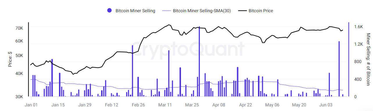 En el siguiente gráfico, se puede observar cómo las ventas de los mineros (velas azules) aumentaron a partir de mayo hasta la actualidad: