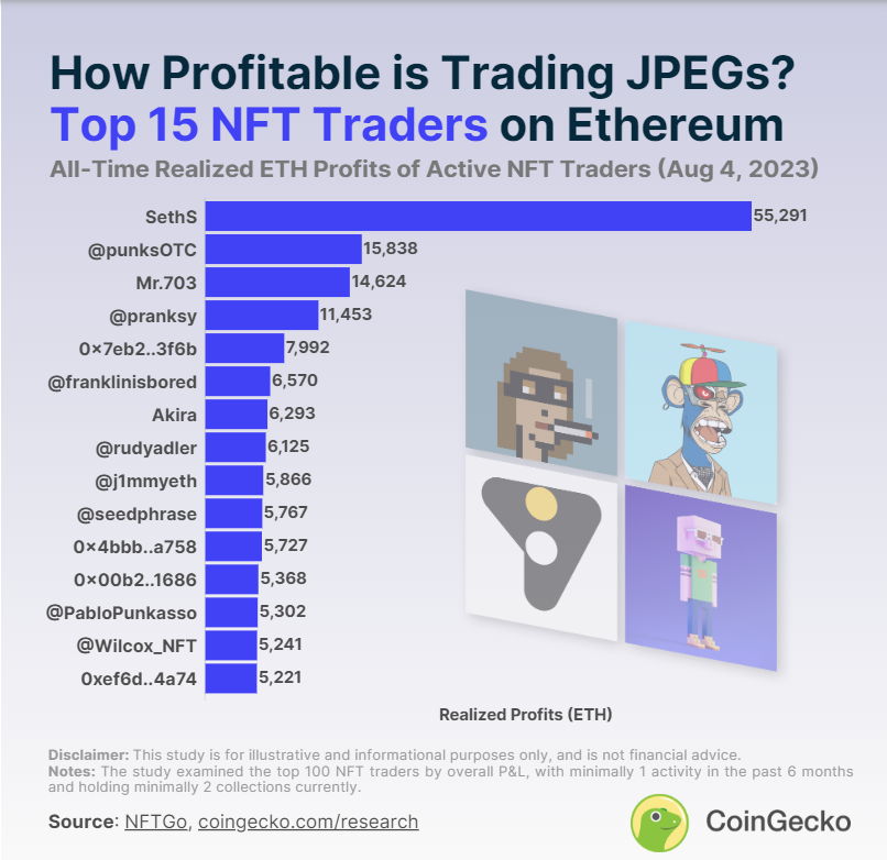De acuerdo a CoinGecko, a 11 de los 15 principales traders de NFT, la colección de CryptoPunks les generó grandes sumas de dinero. Por ejemplo, a SethS esta colección le generó ganancias de USD 90 millones y a otros traders, como es el caso de Franklin, le permitió obtener USD 3 millones. En total, CryptoPunks representa aproximadamente el 70% de las ganancias de los comerciantes.