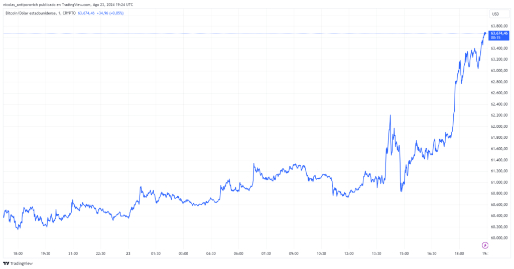 A pesar de los dichos de Muvdi, el precio de bitcoin no ha dejado de subir desde que el presidente de la Fed confirmó, horas atrás, que habrán recortes en las tasas de interés.