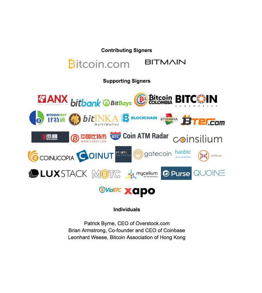 Entre las empresas firmantes hay presencia latinoamericana con la casa de cambio BitInka, la compañía colombiana Bitcoin Suramérica y la organización sin fines de lucro Bitcoin Colombia; quienes se ubican junto a otras empresas icónicas de este ecosistema como Bitmain, Blockchain, Coin ATM Radar, HaoBTC, Huobi, Purse, Mycelium y Xapo.