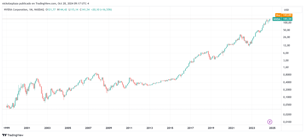 Por lo pronto, las acciones de Nvidia han marcado un nuevo máximo histórico la semana pasada, como se aprecia en el siguiente gráfico de TradingView.
