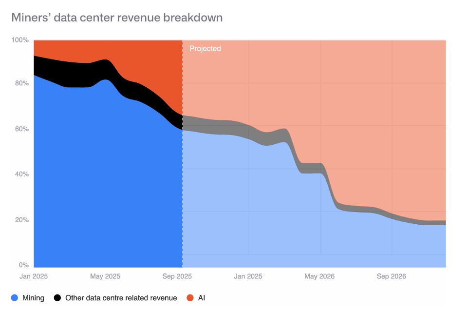 CoinShares describe un cambio profundo en la industria minera. Según el informe, “los mineros han iniciado una agresiva diversificación hacia computación de alto rendimiento (HPC) e inteligencia artificial”. Ello, impulsados por la necesidad de estabilizar ingresos y mejorar márgenes.